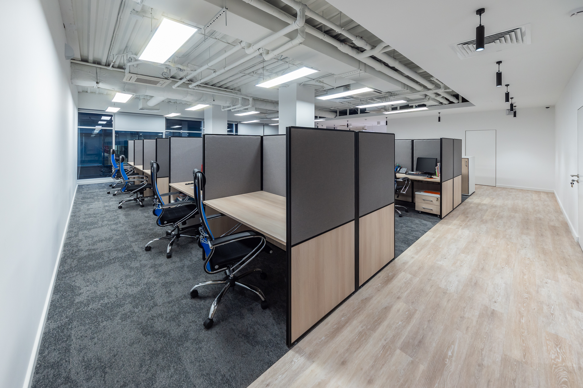 Для удобства и акустического комфорта для сотрудников использованы мобильные перегородки UNO.