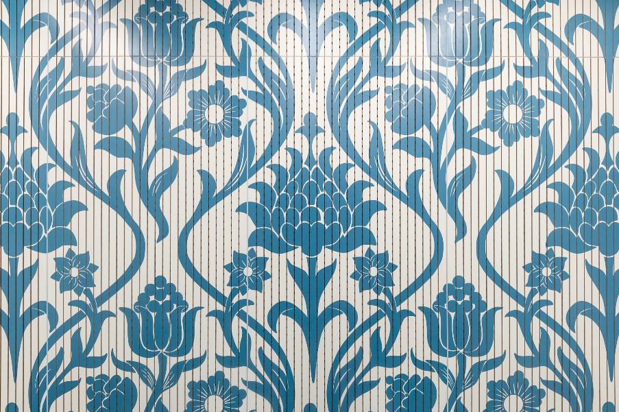 Идея индивидуального декора, заложенная в проекте, была достигнута за счет индивидуальных принтов, которые разработали специально для проекта и нанесли на стеновые панели.